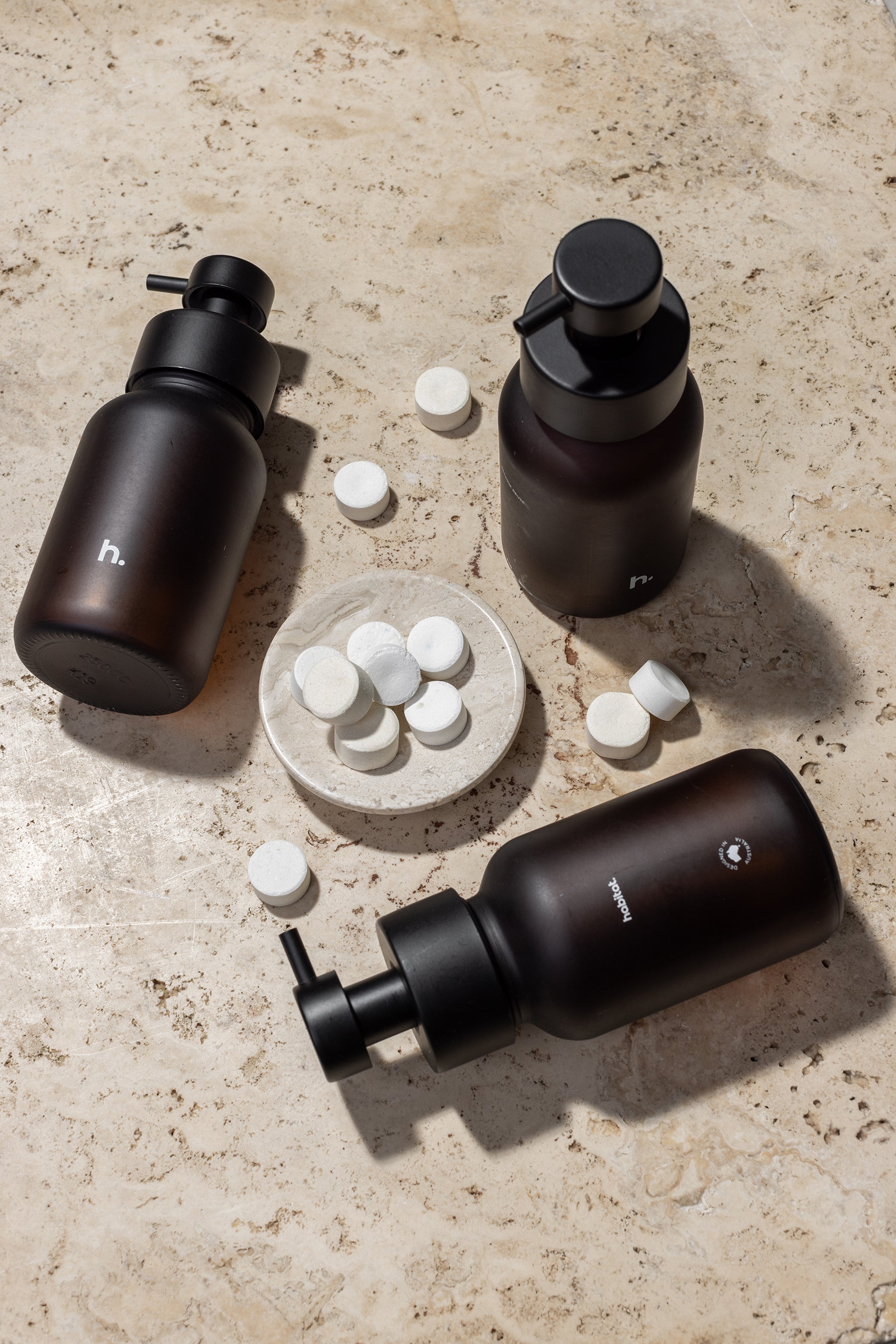 Our soap tablets and reusable dispensers are helping to reduce plastic entering landfill, our waterways and our bodies. They also help to reduce C02 emissions associated with transport of traditional soaps which can contain up to 90% water.